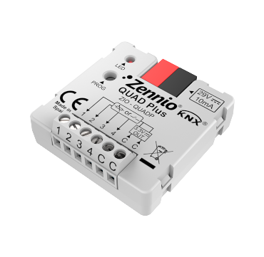 Устройство QUAD Plus имеет модуль аналоговых или бинарных входов и 4 термостата, которые можно монтировать в установочную коробку. Оно объединяет в себе несколько устройств, включая универсальный входной модуль на 4 канала для беспотенциальных кнопок/выключателей, датчиков температуры и датчиков движения. Все составляющие могут работать независимо друг от друга и имеют собственные коммуникационные объекты. Характеристики устройства включают 4 входа для беспотенциальных кнопок/выключателей/датчиков, подключение до 4 датчиков температуры с контролем обрыва, подключение до 4 датчиков движения и 4 независимых термостата с различными режимами и функциями. Устройство также может использовать датчики температуры других производителей с подстройкой кривой, не требует внешнего питания, имеет интегрированный KNX BCU, полное сохранение данных при пропадании питания и соединения, которые могут быть сделаны без устройства.