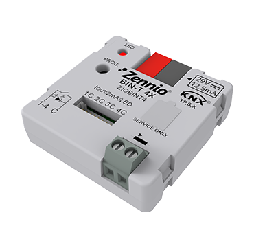 BIN-T 4X — это модуль с 4 настраиваемыми каналами, которые могут использоваться как бинарные входы или светодиодные выходы. Бинарные входы могут быть сконфигурированы как датчики, беспотенциальные переключатели или кнопки. Бинарные выходы могут использоваться для управления светодиодами с низким потреблением тока. Кроме того, он включает в себя 1 вход для датчика температуры и 1 комнатный термостат для управления системами отопления/охлаждения. Совместим с KNX Secure. Установка в стандартную монтажную коробку. Аксессуары: датчик температуры.