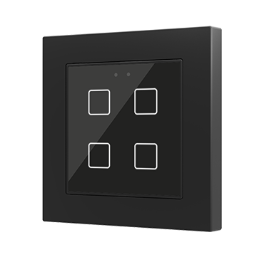Сенсорный выключатель KNX Flat 55 X4, версия vT, с 4-мя кнопками, оснащенный LED-индикацией, датчиком приближения и размерами 55х55х9 мм, предоставляется в установочной коробке. Рамка не включена в комплект поставки. Выключатель имеет черную расцветку.