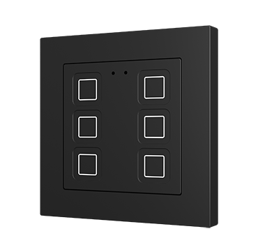 6-кнопочный сенсорный выключатель KNX Tecla 55 X6 изготовлен из PC-ABS пластика. Он оснащен фоновой подсветкой с возможностью регулировки яркости по датчику освещенности и датчиком приближения. Размеры выключателя составляют 55х55х9 мм. В комплект поставки не входит рамка ZS55. Выключатель упакован в установочную коробку и имеет черный цвет.